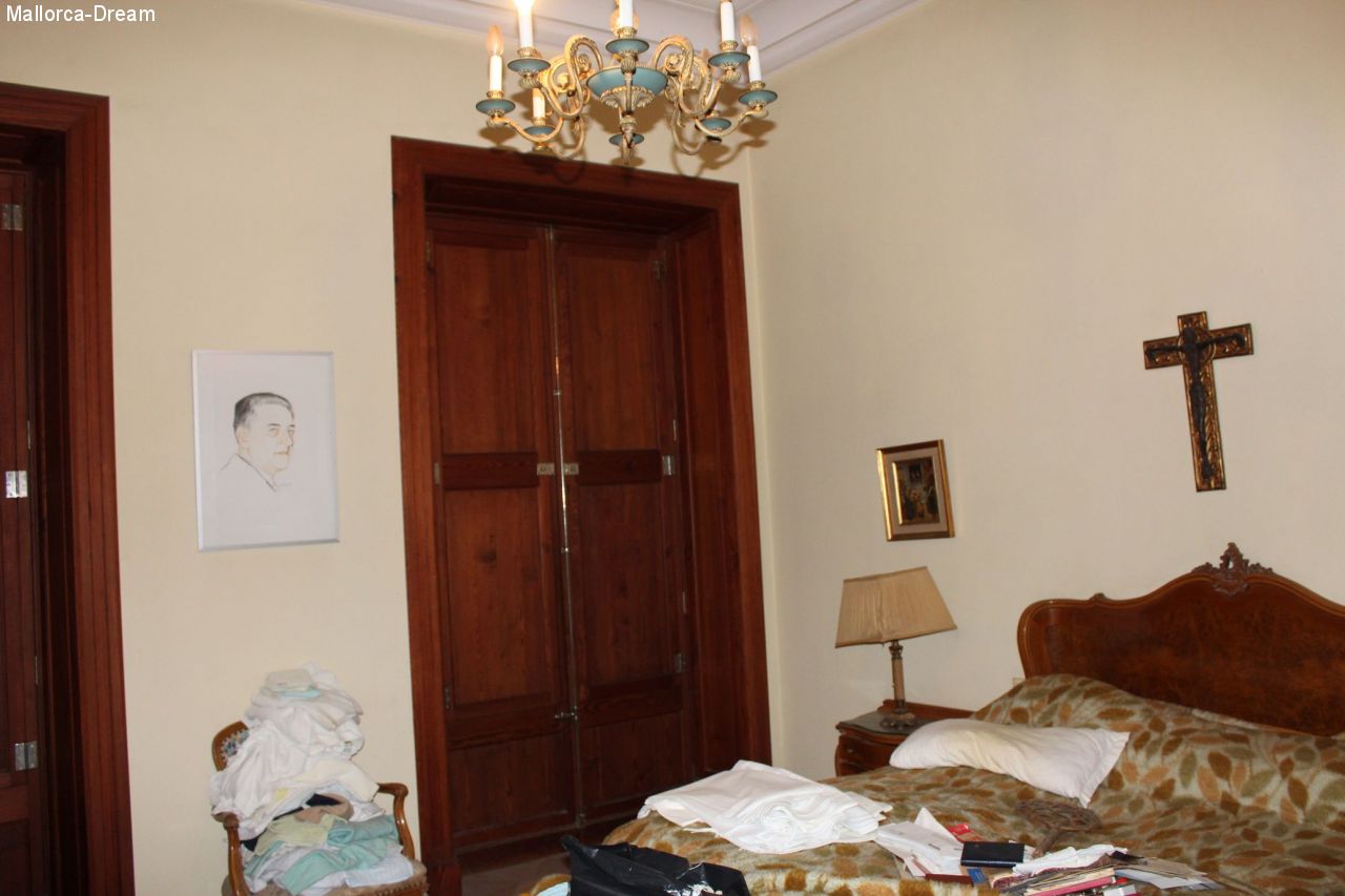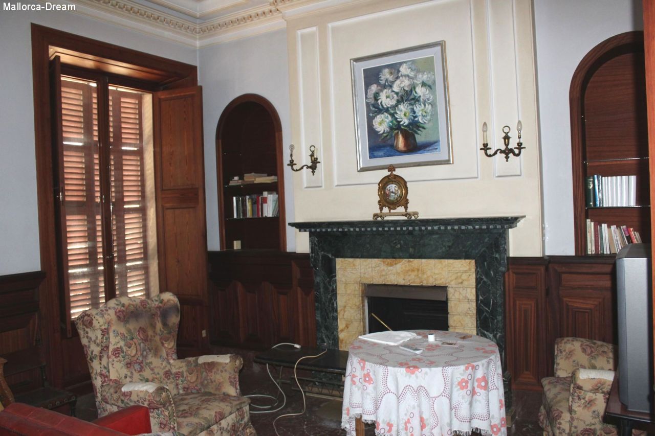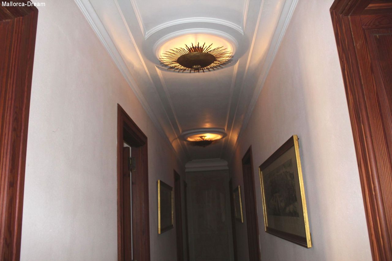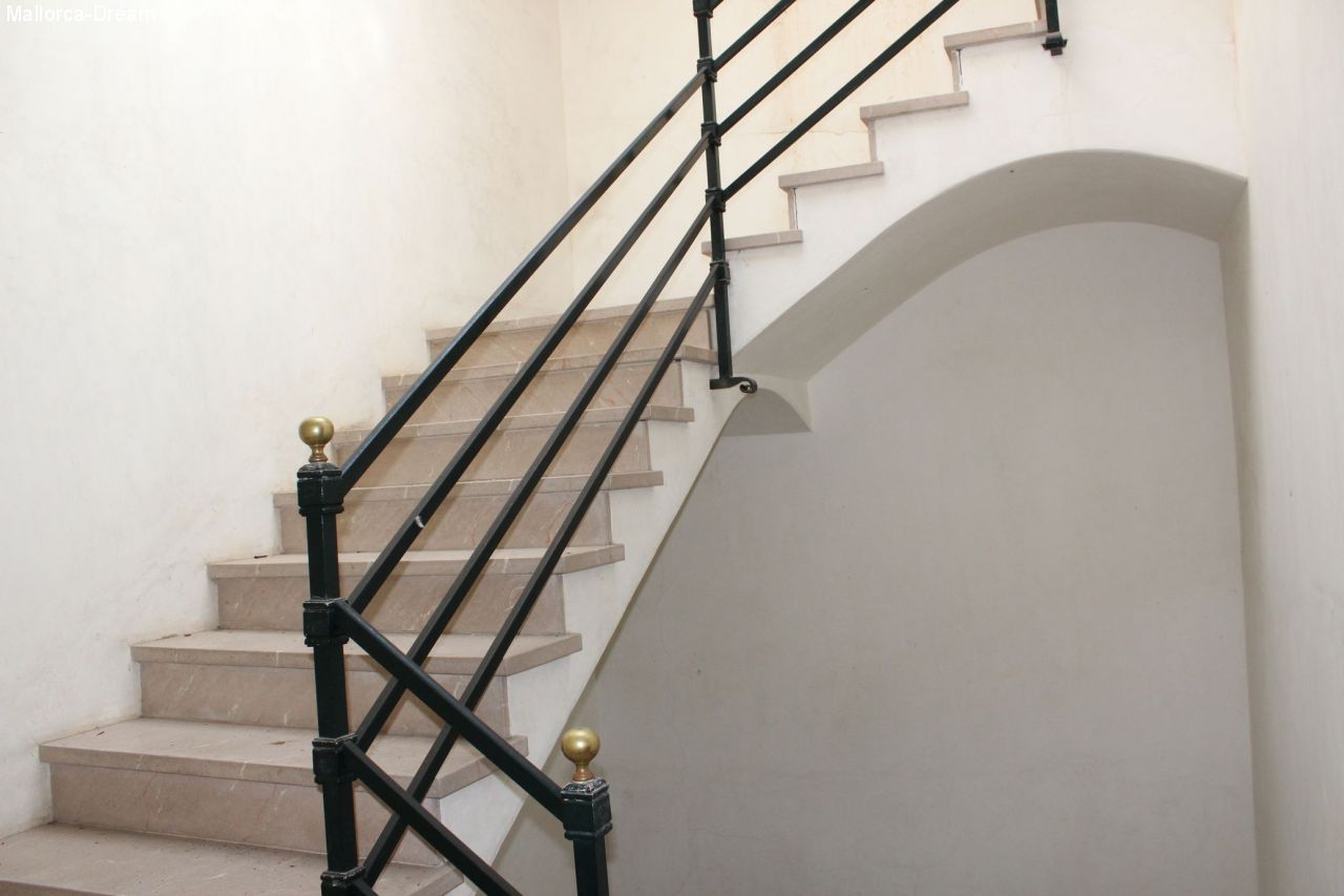 1. Etage 265m2: hier befindet sich der zuletzt als Wohnung genutzte Bereich 213m2: langer Flur mit besonderer Freske an der hinteren Wand, Küche mit Zugang zur Empore, grosser Salon mit Kamin und alter Stuckdecke, 4 SZ mit schönen Holzelementen und verzierten Decken, Bad , separate Toilette. Die Empore umrahmt den Patio und bietet an einer Seite noch weitere Räumlichkeiten, 52m2