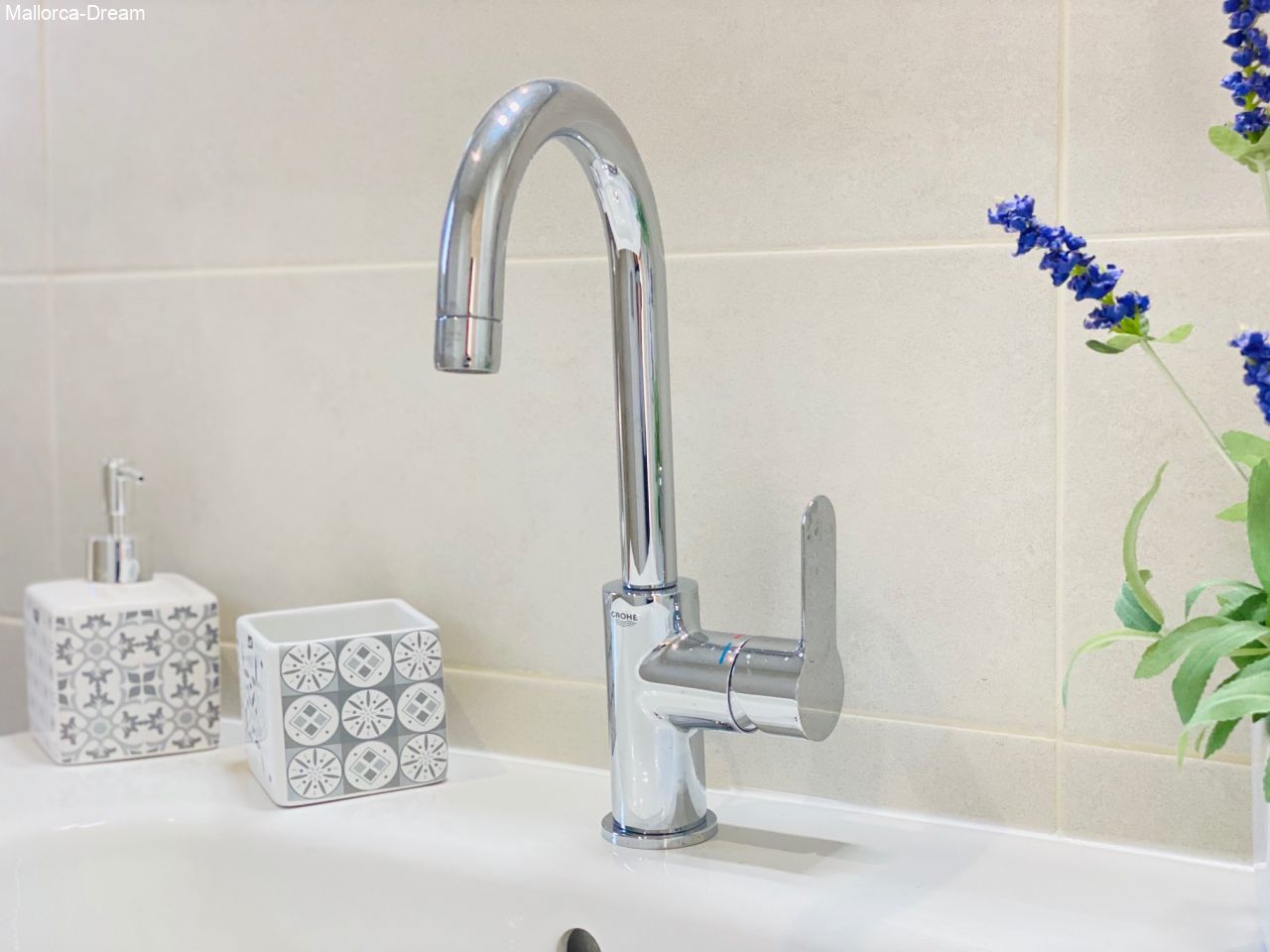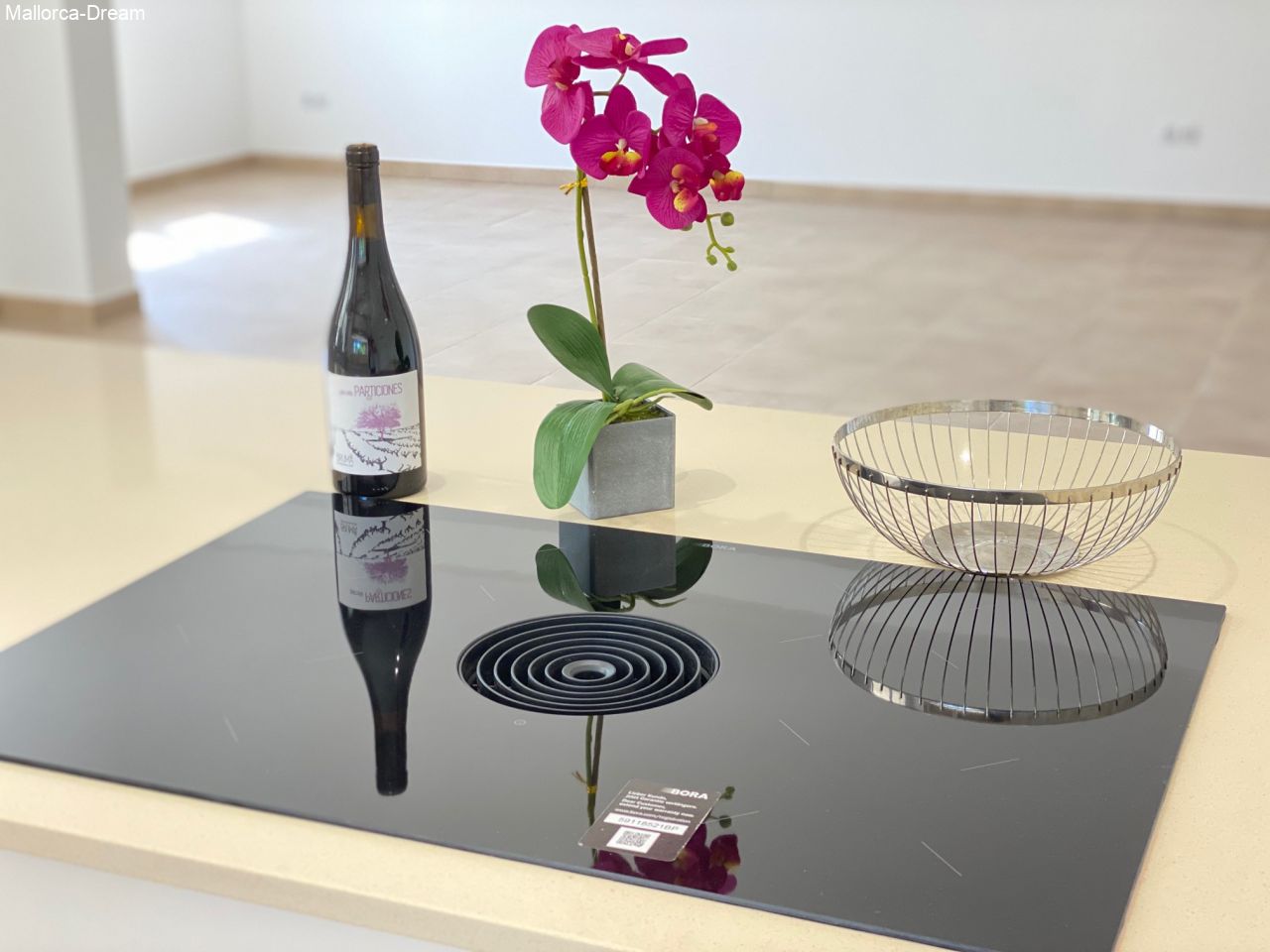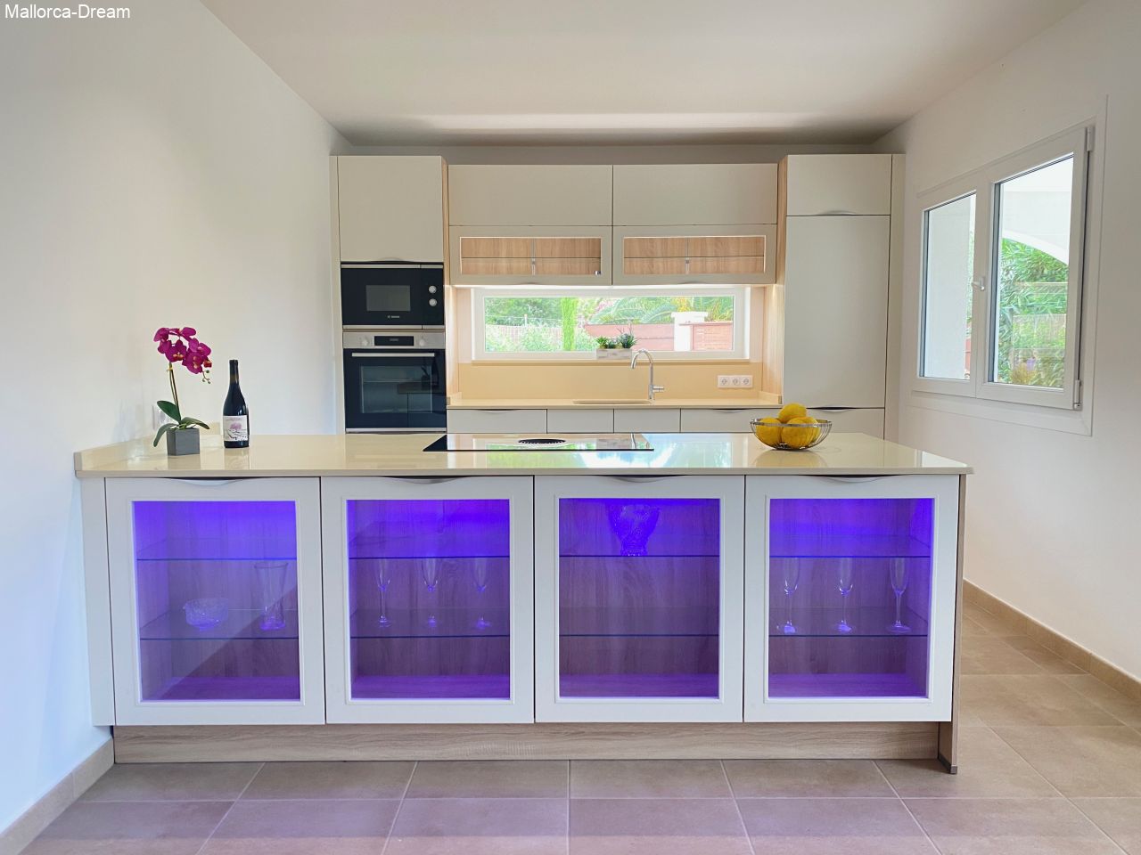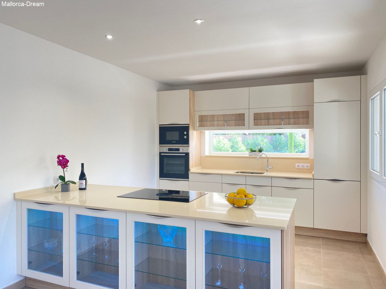 Offene, helle Wohnküche mit hochwertigen Einbauten (deutsches Fabrikat, BORA-Abzug, BOSCH-Geräte, Spülmaschine, Entkalkungsanlage). Salon mit direktem Zugang zur Terrasse und zum neu angelegten Pool, 4 Doppelschlafzimmer, alle mit Bad en suite,