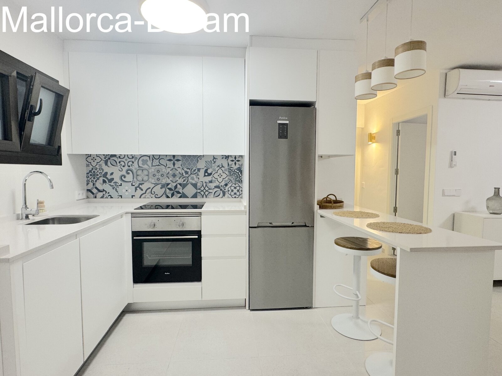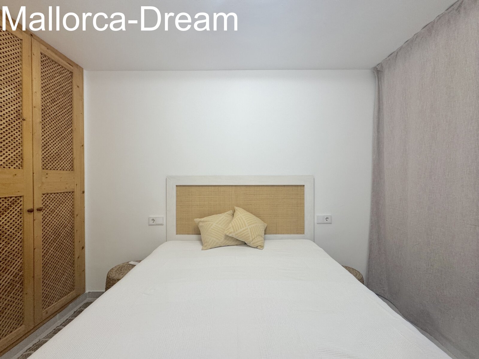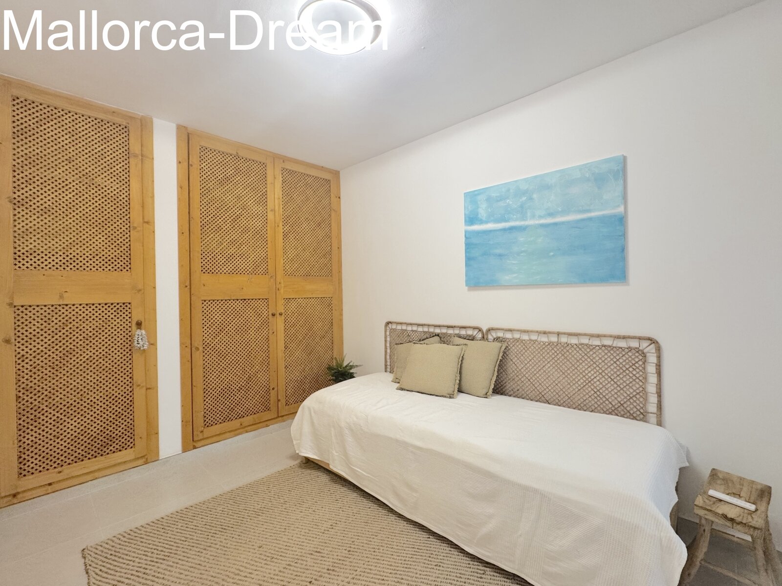 Sehr moderne und elegant eingerichtete Meerblick-Wohnung mit Stellplatz in exklusiver Lage von Font de sa Cala : Diese stilvoll eingerichtete Wohnung in der 1. Etage einer sehr gepflegten Wohnanlage mit Aufzug bietet Ihnen ca. 75 m² Wohnfläche plus 10 m² Balkon – insgesamt 85 m². Vom Balkon genießen Sie einen Blick auf Palmen und das Meer.