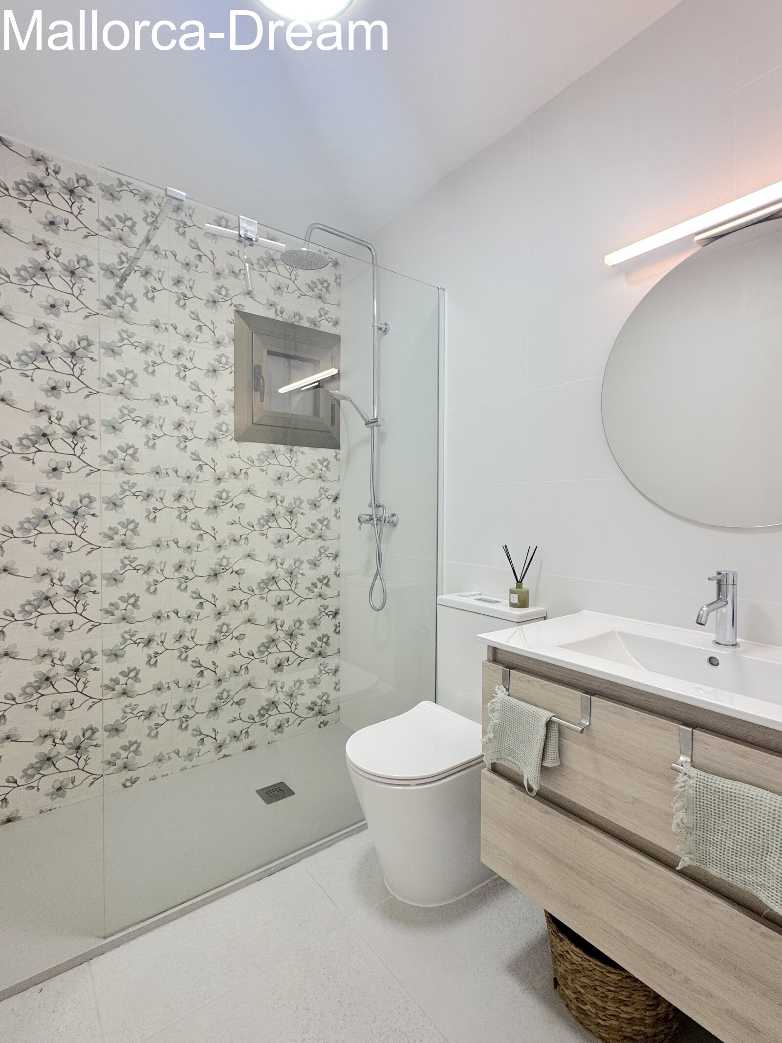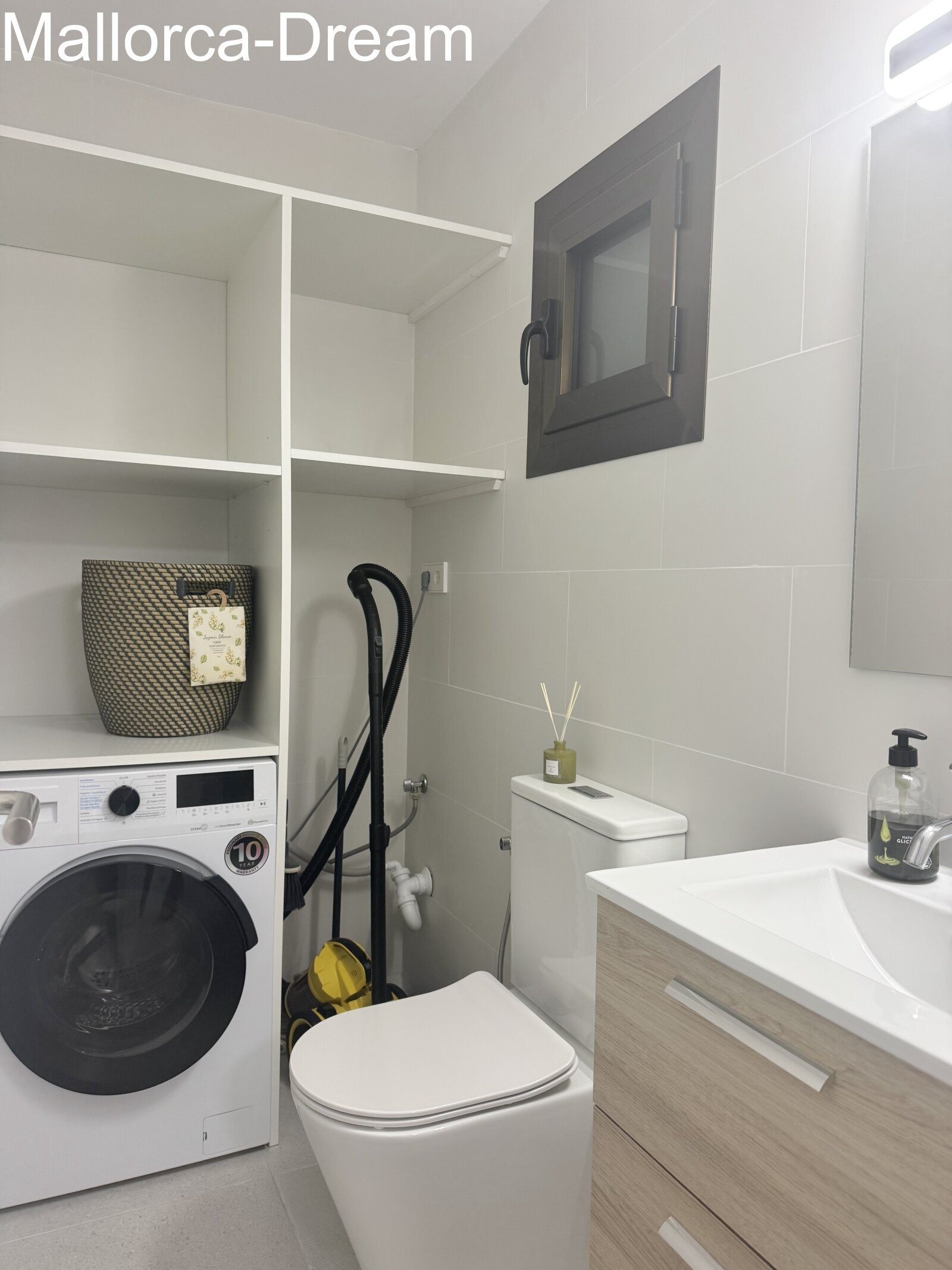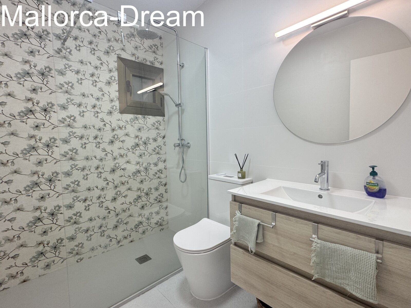 Sehr moderne und elegant eingerichtete Meerblick-Wohnung mit Stellplatz in exklusiver Lage von Font de sa Cala : Diese stilvoll eingerichtete Wohnung in der 1. Etage einer sehr gepflegten Wohnanlage mit Aufzug bietet Ihnen ca. 75 m² Wohnfläche plus 10 m² Balkon – insgesamt 85 m². Vom Balkon genießen Sie einen Blick auf Palmen und das Meer.