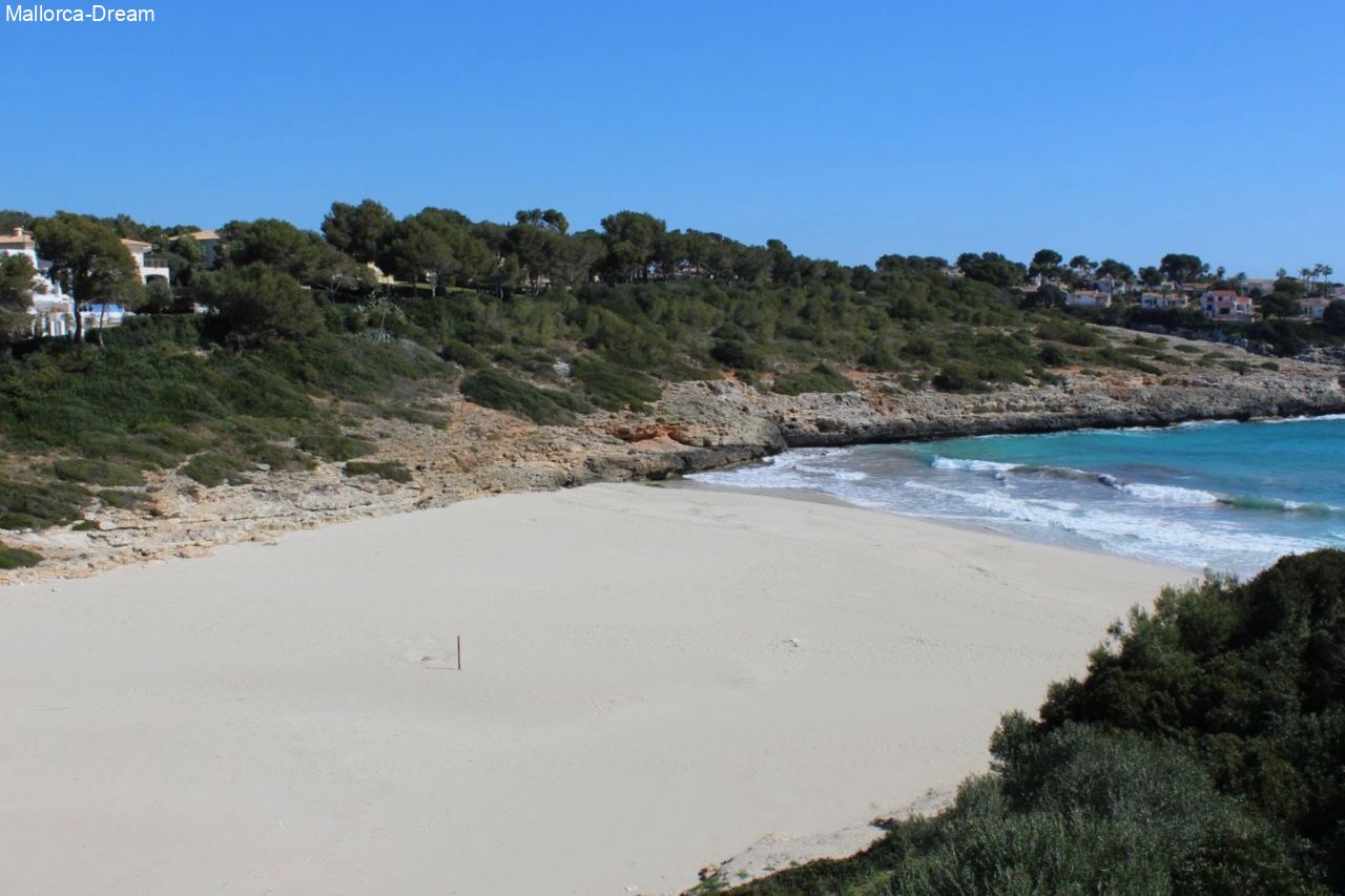Cala Mandia is a small and quiet resort south of Porto Cristo on the east coast of Majorca, the beach is the mid one of three beautiful bays, surrounded by flat rocks. The 60 meters long, but 120 meters wide beach has fine white sand and turquoise crystal clear water. There are few hotels, but many holiday homes and apartments. Within good reach there is a good selection of restaurants, bars and shops