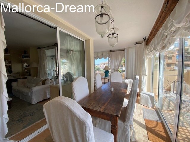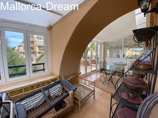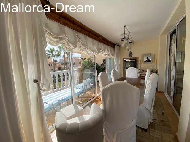 This stunning apartment is located in one of the most sought-after residential complexes in Sa Coma and offers everything you need for comfortable island living. With a living area of approximately 132m² the property features two spacious bedrooms, two bathrooms, a fully equipped kitchen, a utility room, and a generous living room with a fireplace. A bright winter garden and several open terraces provide the perfect space to relax.