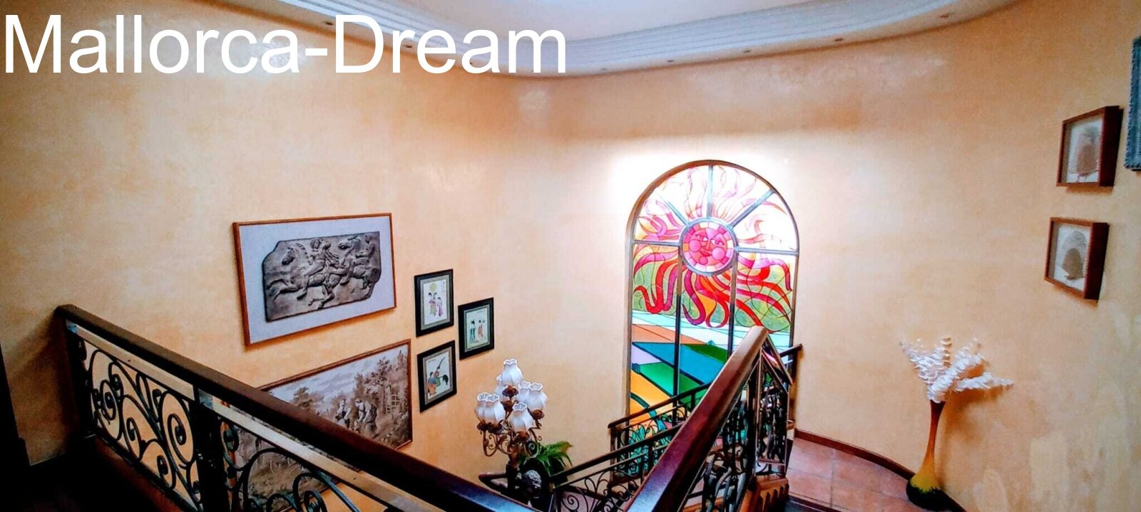 Spacious entrance hall with decorative window