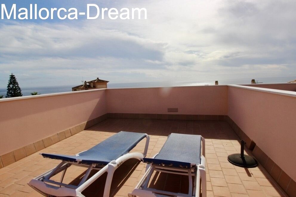 🌴 A Mediterranean dream, available exclusively at Mallorca Dream. Penthouse apartments like these, with spectacular sea views, a private roof terrace, a palm-lined pool, and parking space, are extremely sought-after and rarely available.