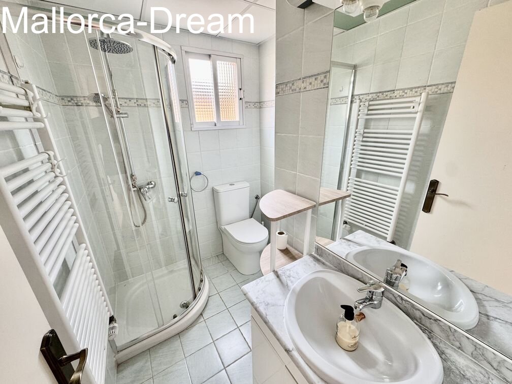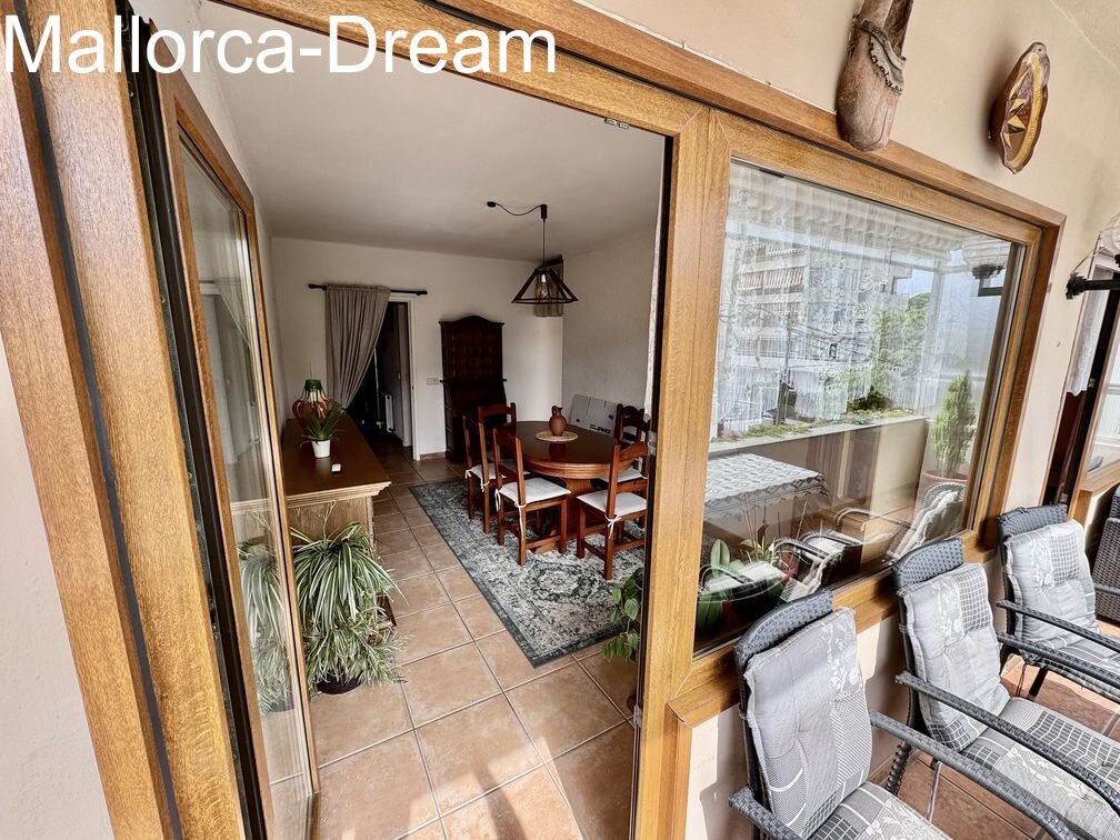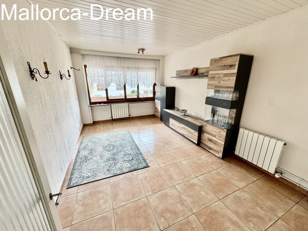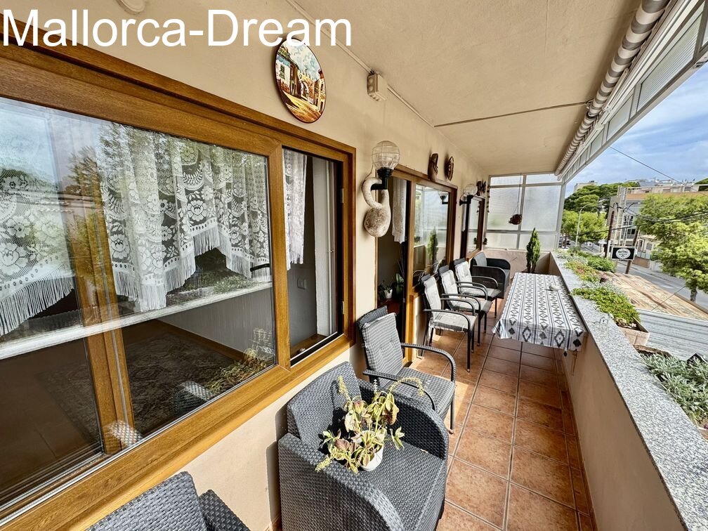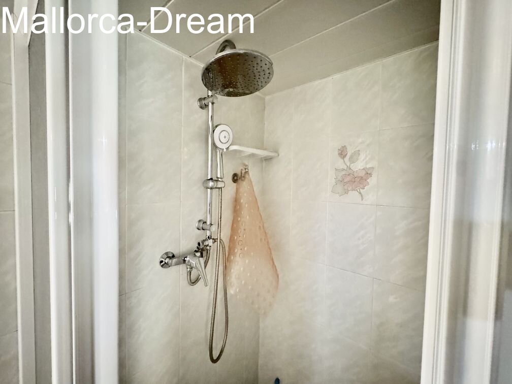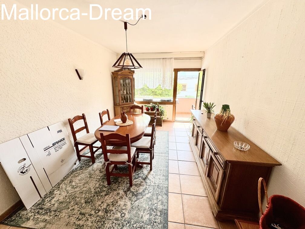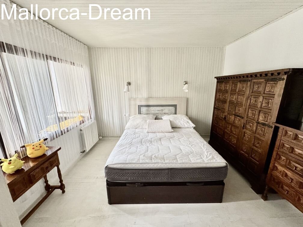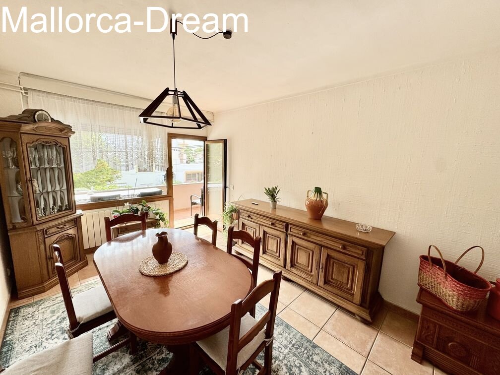 Large apartment in the heart of Cala Millor. Two apartments were combined into one, creating a charming apartment with a whopping 125 m² of living space. It currently has two bedrooms, a dining room, and a living room. However, it can also be converted into three bedrooms. Overall, the property is technically well-maintained and only requires cosmetic improvements if desired. The large dressing room in the master bedroom is a great feature. Three balconies surround the apartment. An underground parking space for two vehicles can be purchased optionally.
