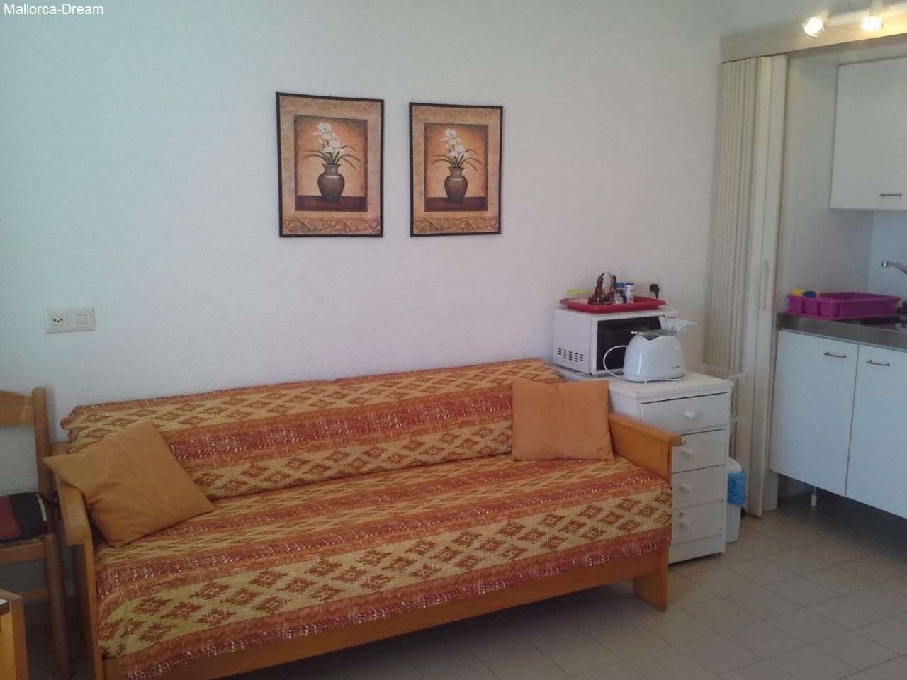 This cozy apartment is ideal for two people wishing to spend the winter on Mallorca’s sunny east coast. The property offers a separate bedroom, a bathroom and a living-dining area with open kitchen – compact, well-kept and functional.