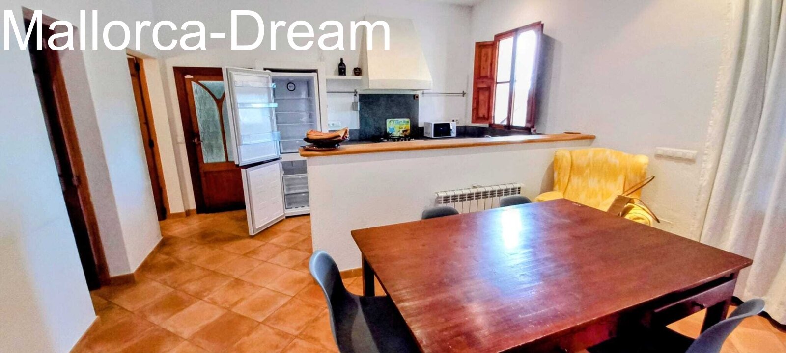 You enter the house through a large, rustic wooden door and find yourself in an open-plan living and dining area with an open kitchen and all electrical appliances. A fireplace, heating and newly installed air conditioning (hot/cold) create a particularly cosy atmosphere in the winter months or during the almond blossom season in spring. When almost seven million almond trees bloom in white and pink and the orange and lemon trees shine, the island shows itself from its most beautiful side.