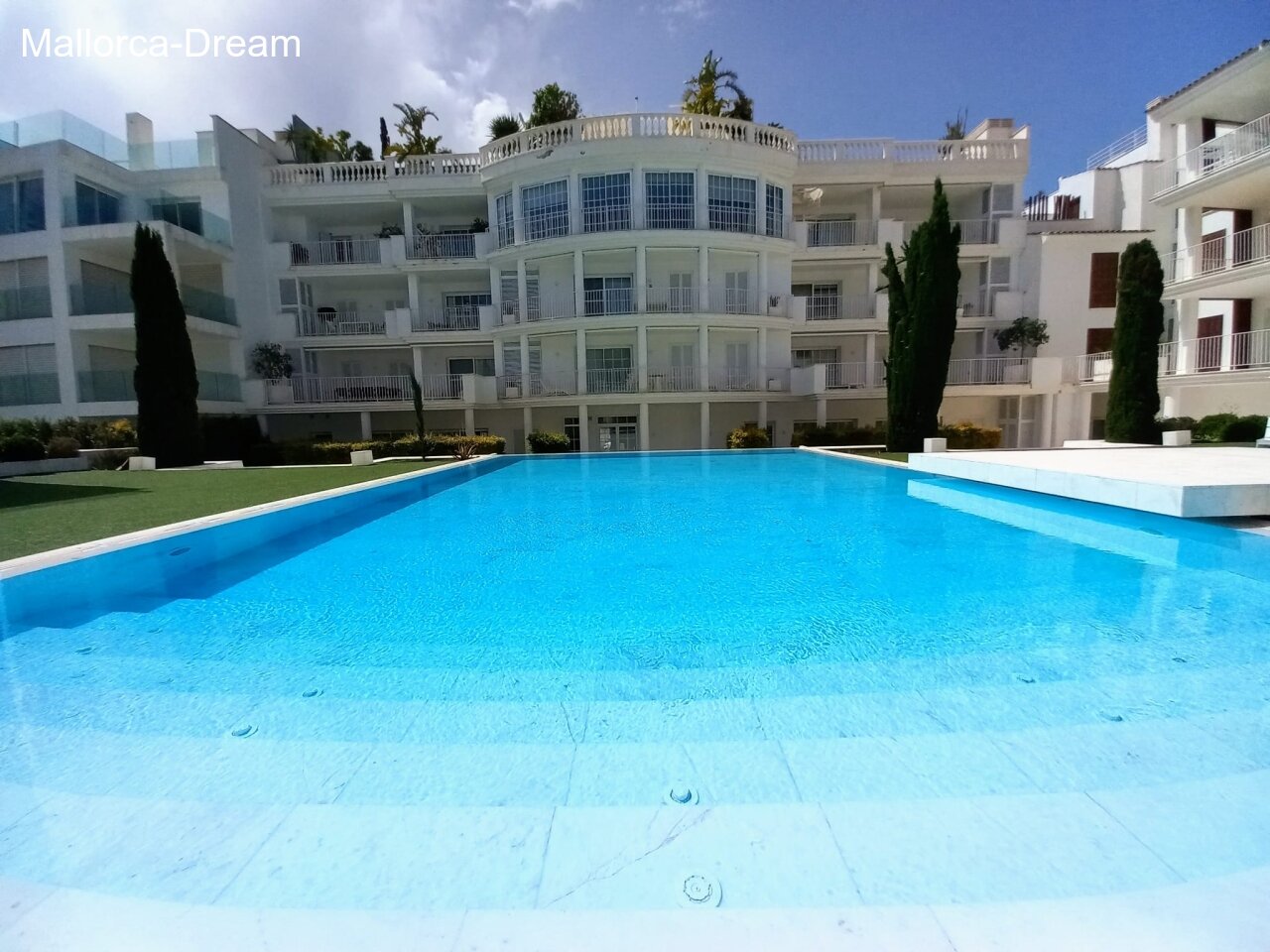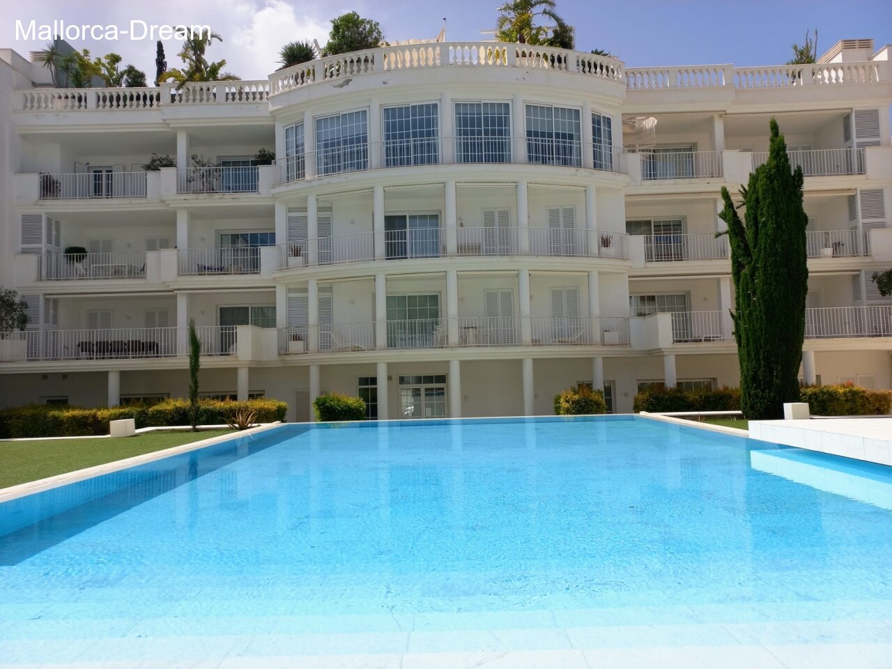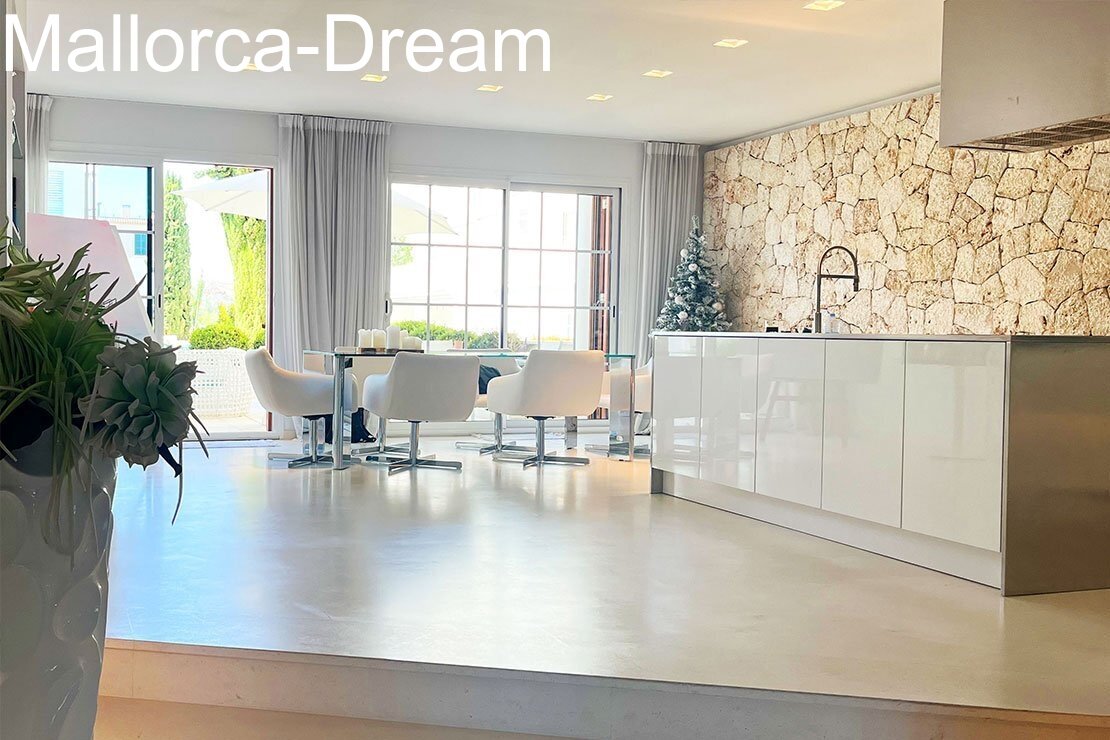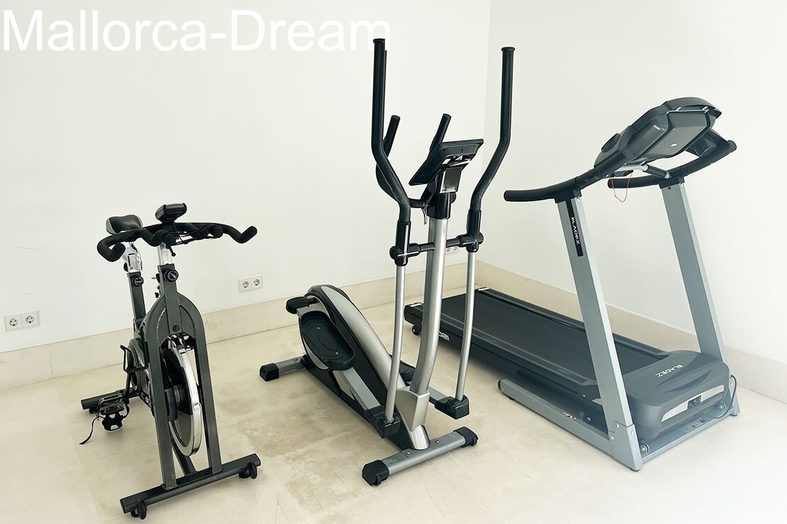 This penthouse flat is located in an exclusive residential complex and meets the highest standards. A swimming SPA with massage function and counter-current system is located on your own 115m2 roof terrace. There is also an outdoor shower. From up here you have a magnificent view over Porto Cristo. Your modern flat also has a balcony from which you can enjoy a view of palm trees and the pool. The well-maintained complex includes a large pool, a fitness room and a Finnish sauna. In the underground garage you have your own parking space plus cellar room. Take the lift from the underground car park directly to your penthouse flat. From your flat you have your own dining lift to your roof terrace. It couldn't be more comfortable!