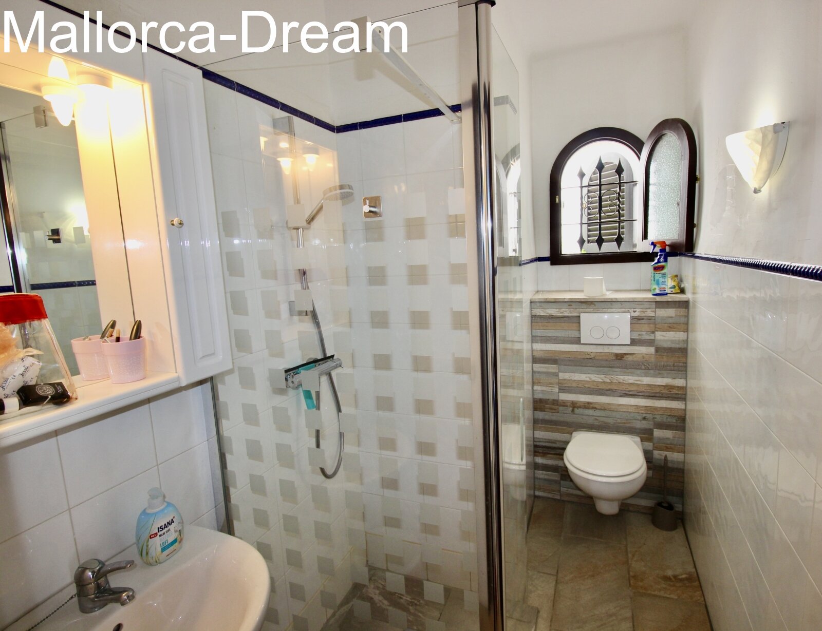 Este exclusivo complejo vacacional de pintoresco estilo ibicenco le ofrece todo lo que su corazón desea. Experimente mágicos amaneceres y atardeceres desde aquí arriba y disfrute de la amplia vista de una bahía caribeña blanca de ensueño. El piso se encuentra en un complejo privado y exclusivo de 3700 metros cuadrados. Gracias a su estilo arquitectónico único, sentirá el famoso ambiente ibicenco. El complejo cuenta con una hermosa piscina comunitaria, así como su propio acceso privado al mar de Cala Anguila, una de las bahías más bellas de Mallorca. Aquí podrá disfrutar al máximo de las cristalinas aguas turquesas y del romántico entorno natural. Asegúrese una de las codiciadas citas de visita hoy mismo. El piso tiene 2 dormitorios y 2 baños y una terraza soleada. La cocina está totalmente equipada. El salón diáfano es un espacio acogedor con chimenea y azulejos antiguos que invita a relajarse y descansar.