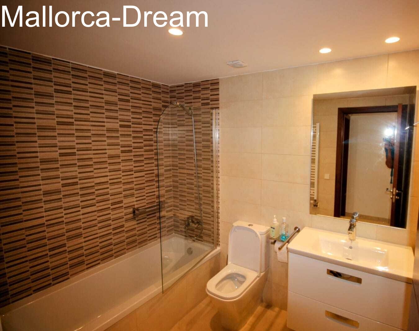 Cala Millor ( la mejor bahía ) está a 55 minutos en coche del aeropuerto de Palma. El bonito paseo marítimo ofrece fácil acceso a muchas tiendas, cafés y restaurantes. El carril bici paralelo al paseo de la playa le lleva rápidamente a la vecina playa de Sa Coma y al romántico puerto pesquero de Cala Bona. A Cala Ratjada y Porto Cristo se puede llegar incluso en barco desde el embarcadero de Cala Millor. Una parada de autobús público se encuentra a sólo 250 metros de su apartamento de vacaciones, así como la popular cafetería " Biggies " y el rancho de caballos " Bonanza ". El práctico supermercado "Mercadona" y también "LIDL" están a sólo 750 metros. A 900 metros encontrará uno de los balnearios de bienestar más modernos de Mallorca, 13 pistas de tenis, un campo de minigolf de 54 hoyos, driving range, putting greens y un pequeño parque acuático con toboganes. Un zoo safari está a 3 kilómetros y la famosa Cueva del Dragón, con el lago subterráneo más grande de Europa, a 7 kilómetros. En un radio de sólo 6 kilómetros encontrará 3 campos de golf.En Cala Millor también está el popular Fussicamp - escuela de fútbol. La superestrella del tenis Rafael Nadal dirige una academia de tenis y un museo interactivo del deporte en su ciudad natal, Manacor, a sólo 20 minutos.