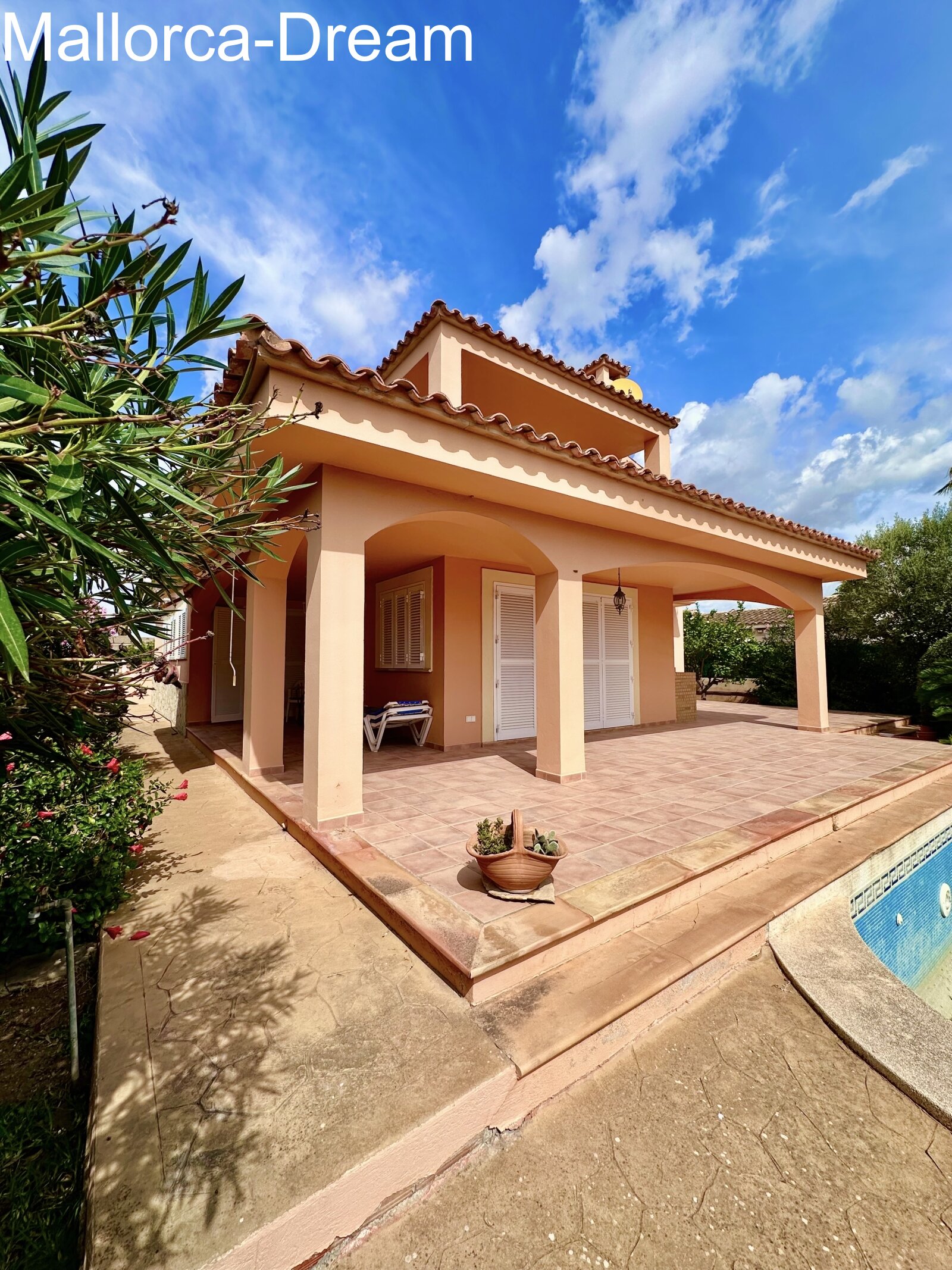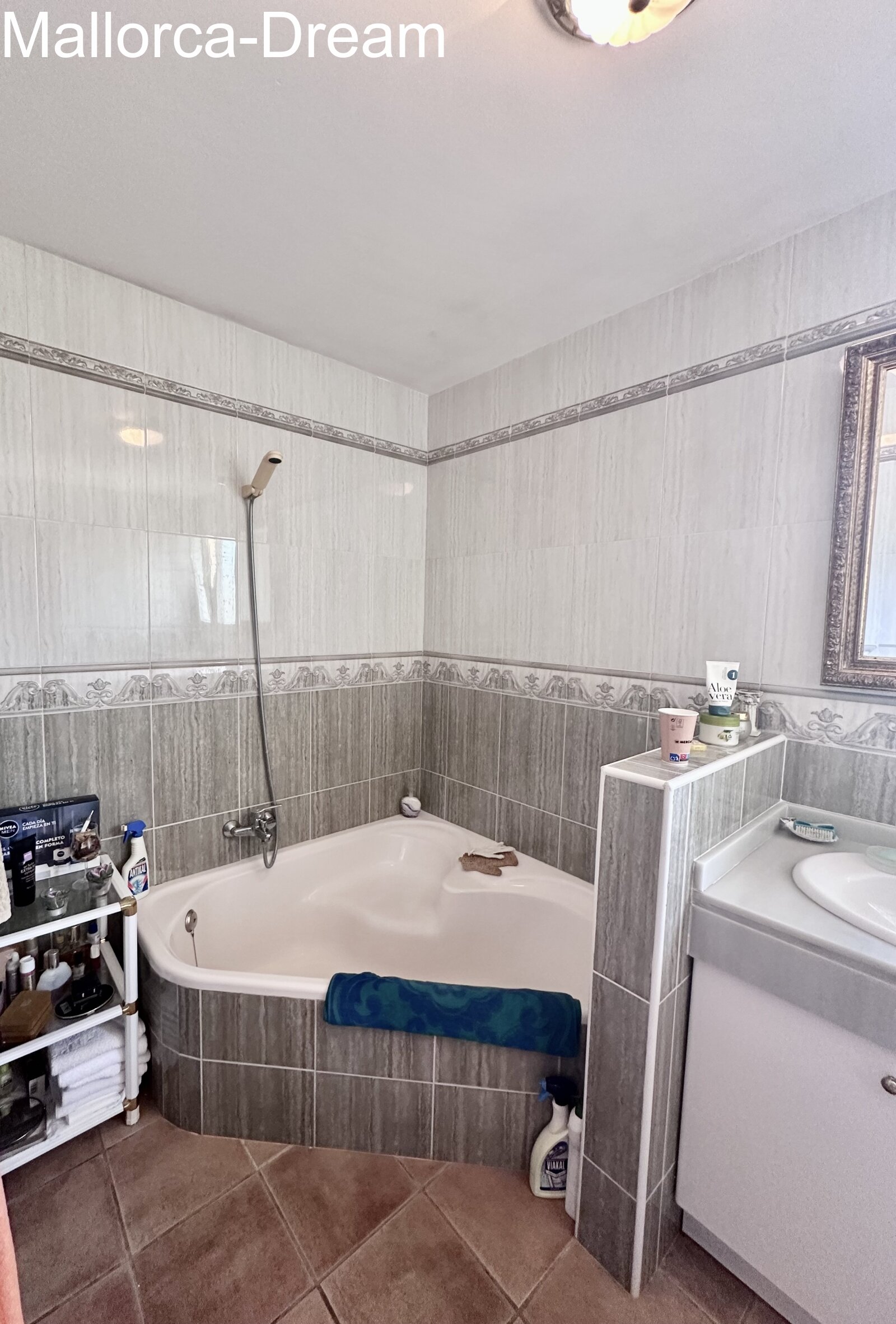 La vivienda está rodeada por su propia parcela y dispone de una preciosa zona de piscina que invita a disfrutar de relajadas horas bajo el sol de Mallorca. Grandes porches y terrazas amplían el espacio habitable hacia el exterior y crean una perfecta conexión entre interior y exterior.